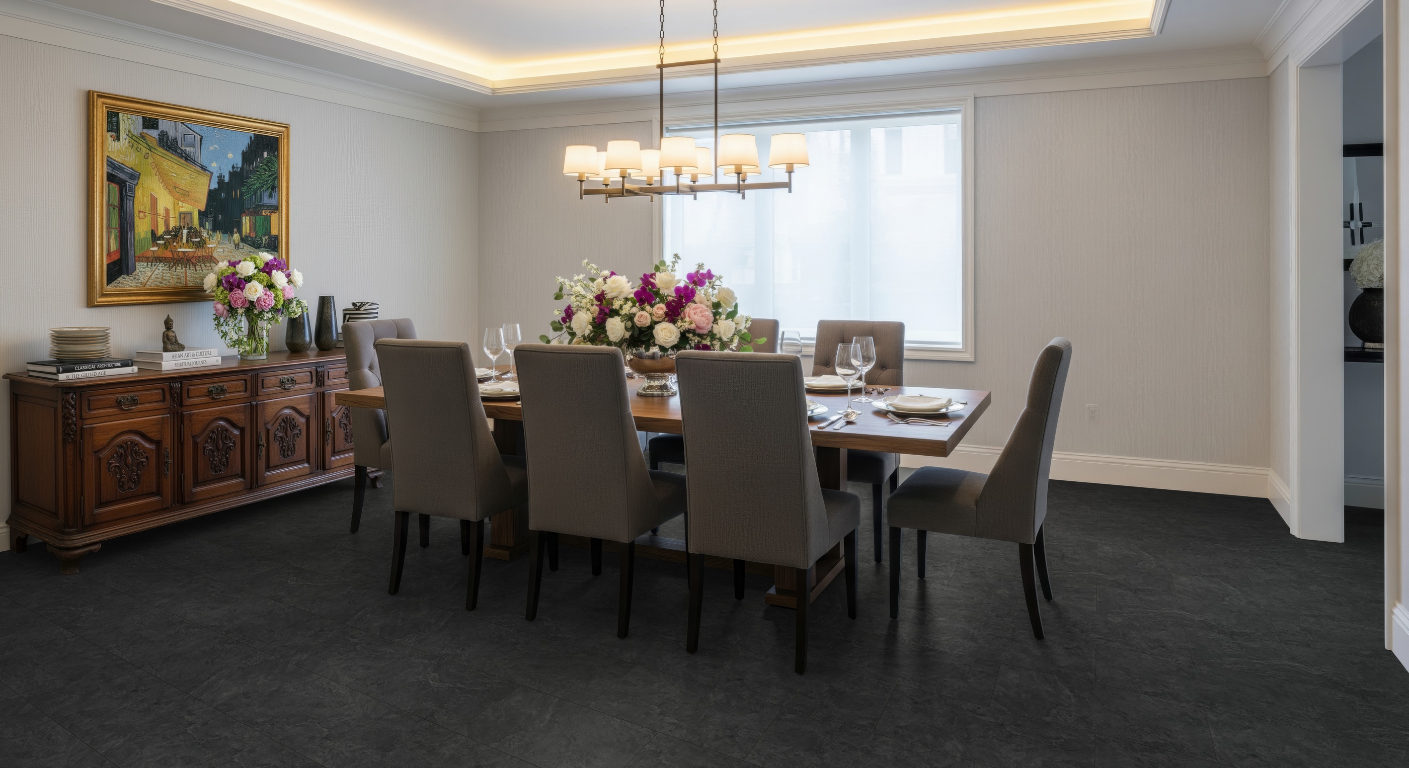 It’s not just about looks; the Pro-Tek™ Editions Charcoal Slate tile is built to last and designed for modern life. It’s the ideal flooring solution for any room in your home and tough enough for demanding commercial environments.