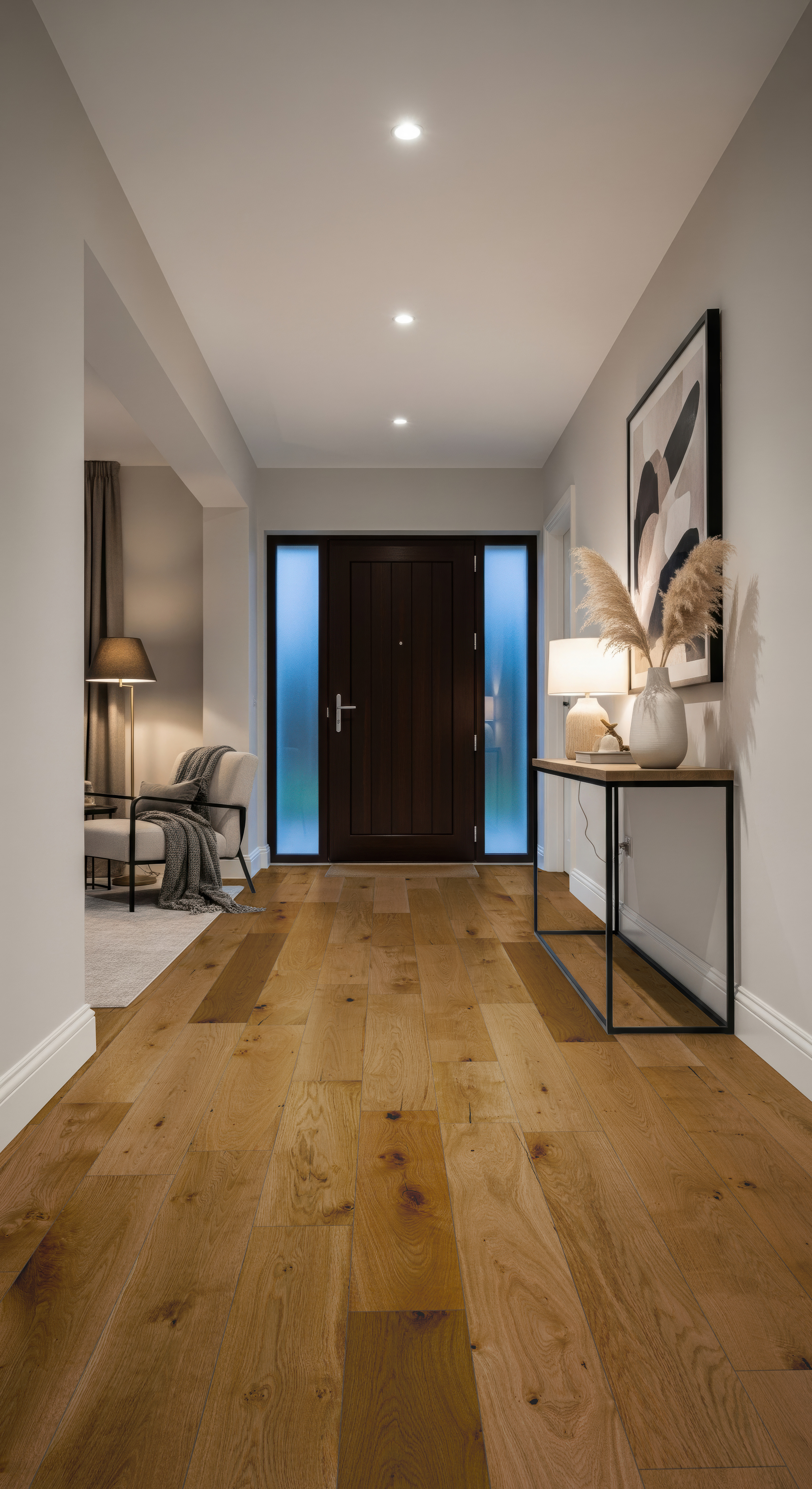 This premium flooring is distinguished by its Brushed & UV Oiled finish. The brushing process gently removes the softer wood to create a beautifully textured surface that follows the natural grain. The UV-cured oil then protects the timber from within, providing a durable, matte finish that is easy to maintain and has an incredibly natural look and feel.