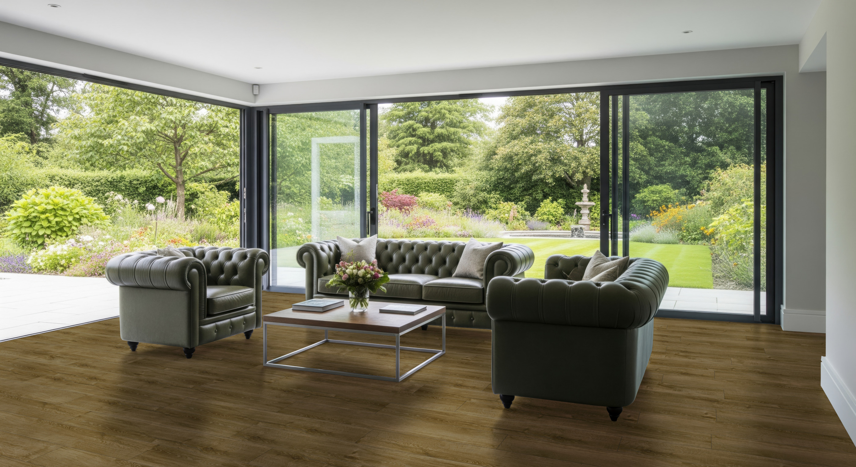 Create a stunning and sophisticated space with Pro-Tek™ Addington Oak Plank Vinyl Click Flooring. A rich and inviting palette of warm, golden-browns and honeyed hues, creating a classic and comfortable atmosphere with the timeless appeal of traditional oak, all with the high performance and low cost of modern vinyl click flooring.