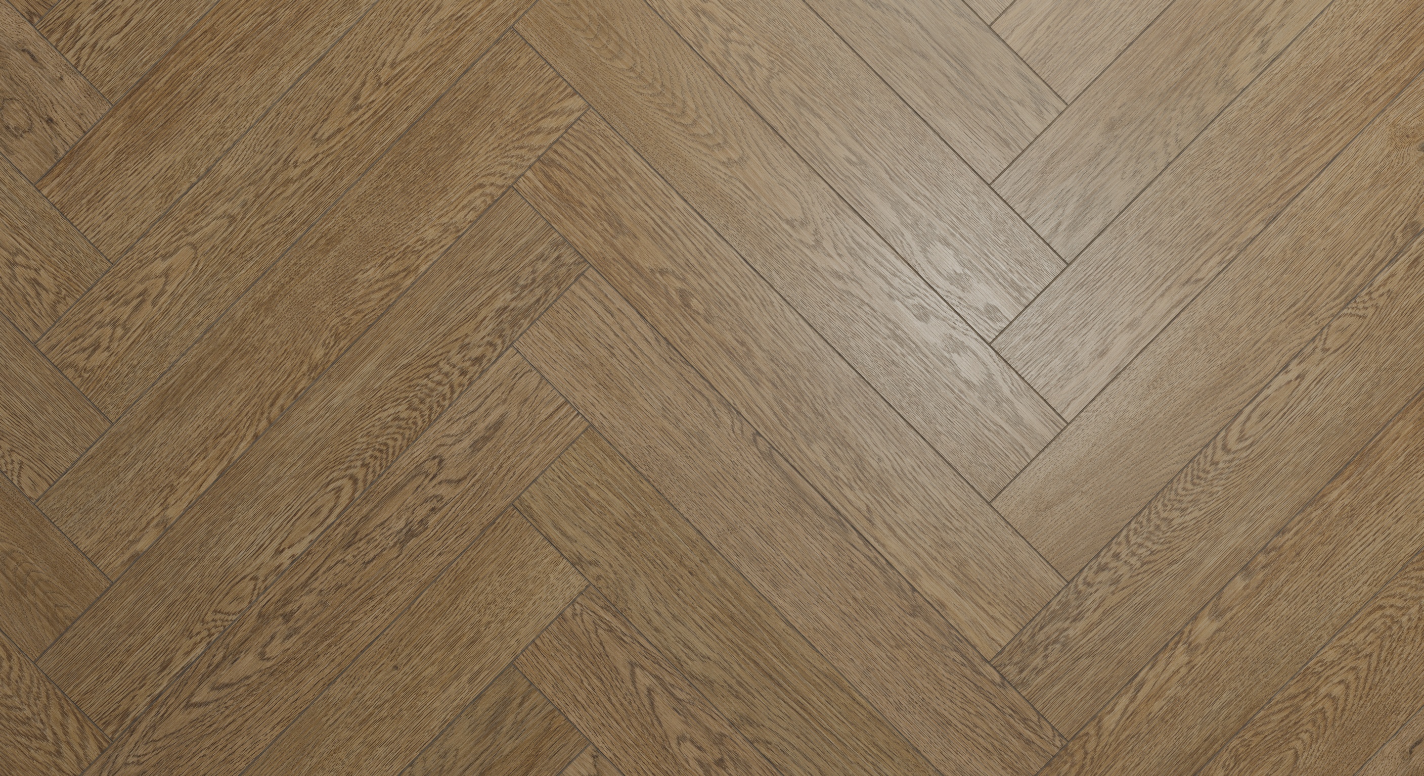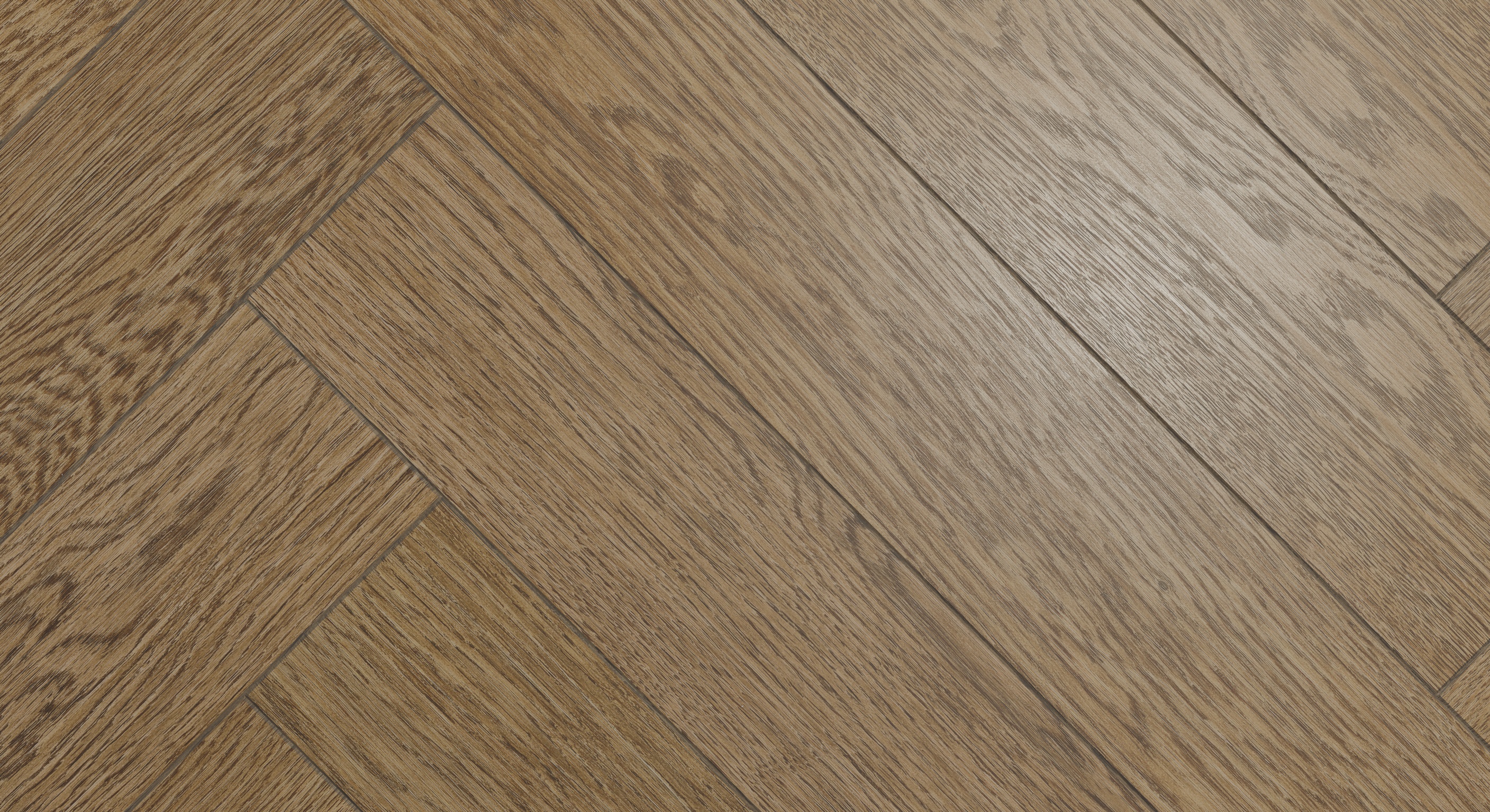 Create a stunning and sophisticated space with Pro-Tek™ Beaumont Brown Herringbone Flooring. A beautiful spectrum of sun-kissed, honeyed oak tones, with lighter sandy highlights and warmer amber lowlights that create a bright and airy feel, but with the high performance and low cost of modern vinyl click flooring.