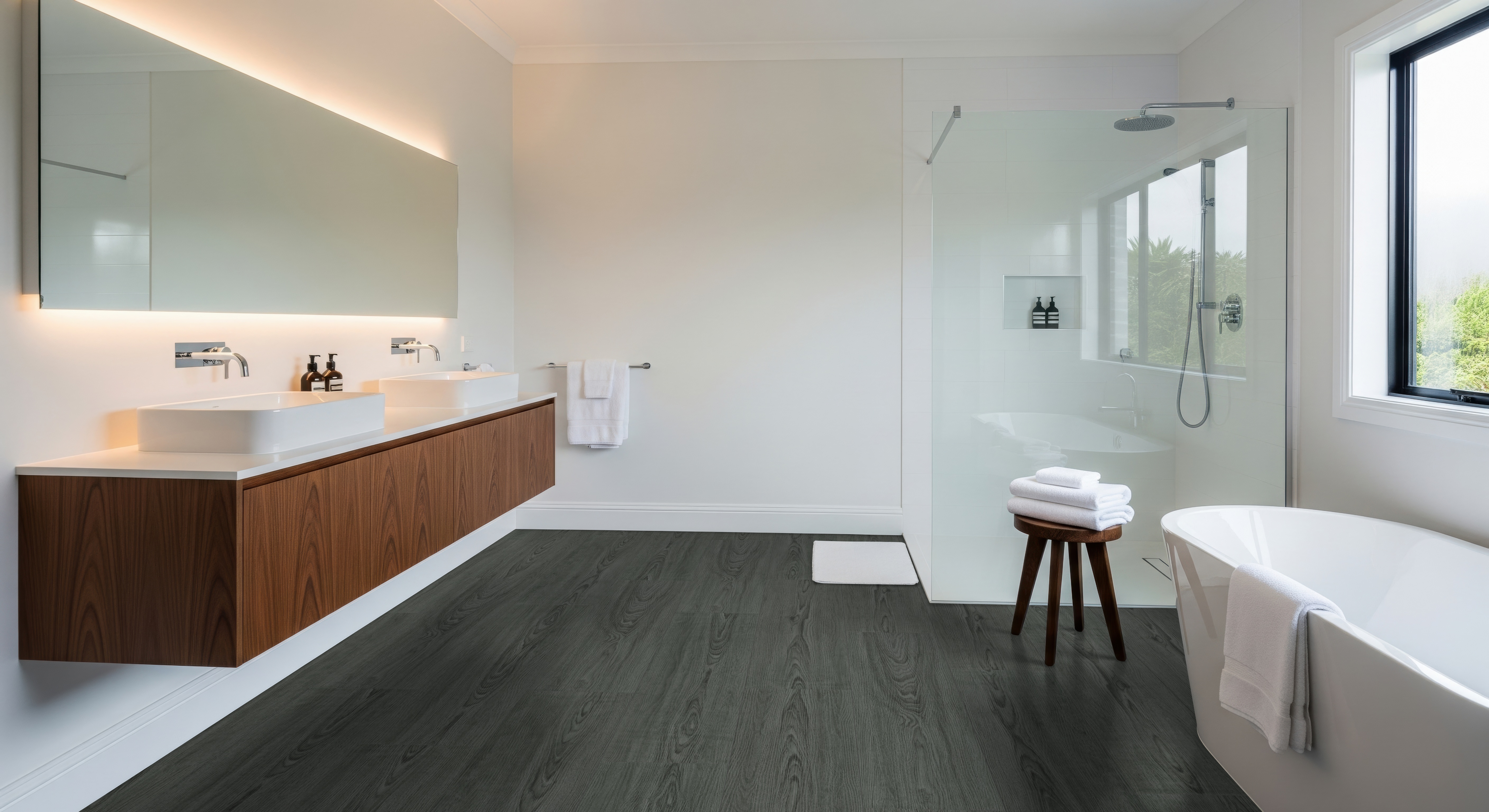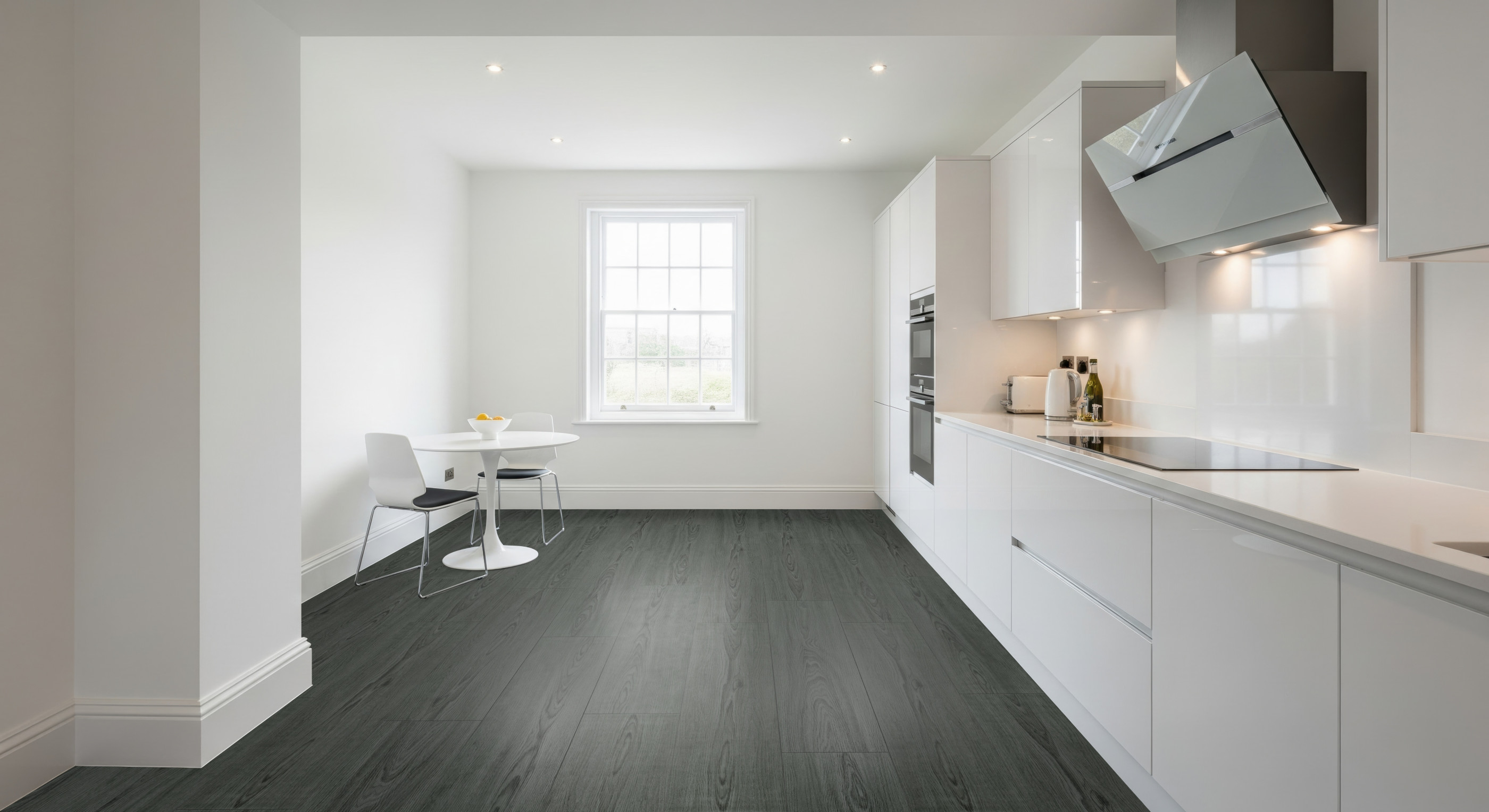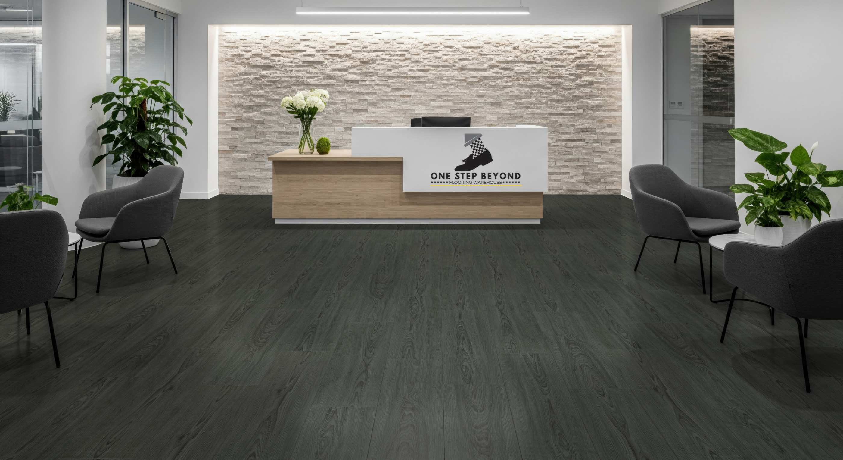 As part of the premium Excel Longplank range, this flooring features a deluxe 8.5mm WPC construction and longer wider planks. This thicker, wood-plastic composite core provides superior underfoot comfort, enhanced acoustic insulation, and exceptional stability, offering a truly luxurious feel. A dramatic and sophisticated palette of deep, moody charcoal blended with rich, dark espresso-brown undertones, creating a bold and luxurious foundation for a contemporary interior, all with the high performance and low cost of modern vinyl click flooring.