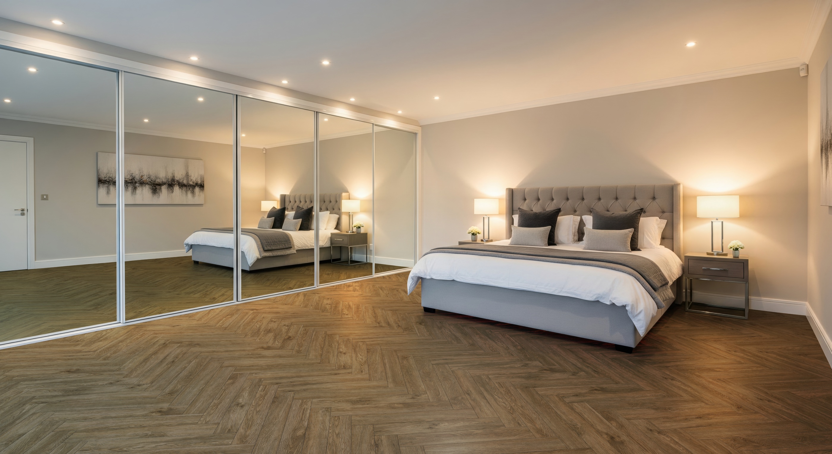 Create a stunning and sophisticated space with Pro-Tek™ Hever Oak Herringbone Flooring. A rich and timeless palette of mid-browns with subtle ashen undertones, evoking the classic and enduring appeal of aged oak in a stately home, but with the high performance and low cost of modern vinyl click flooring.